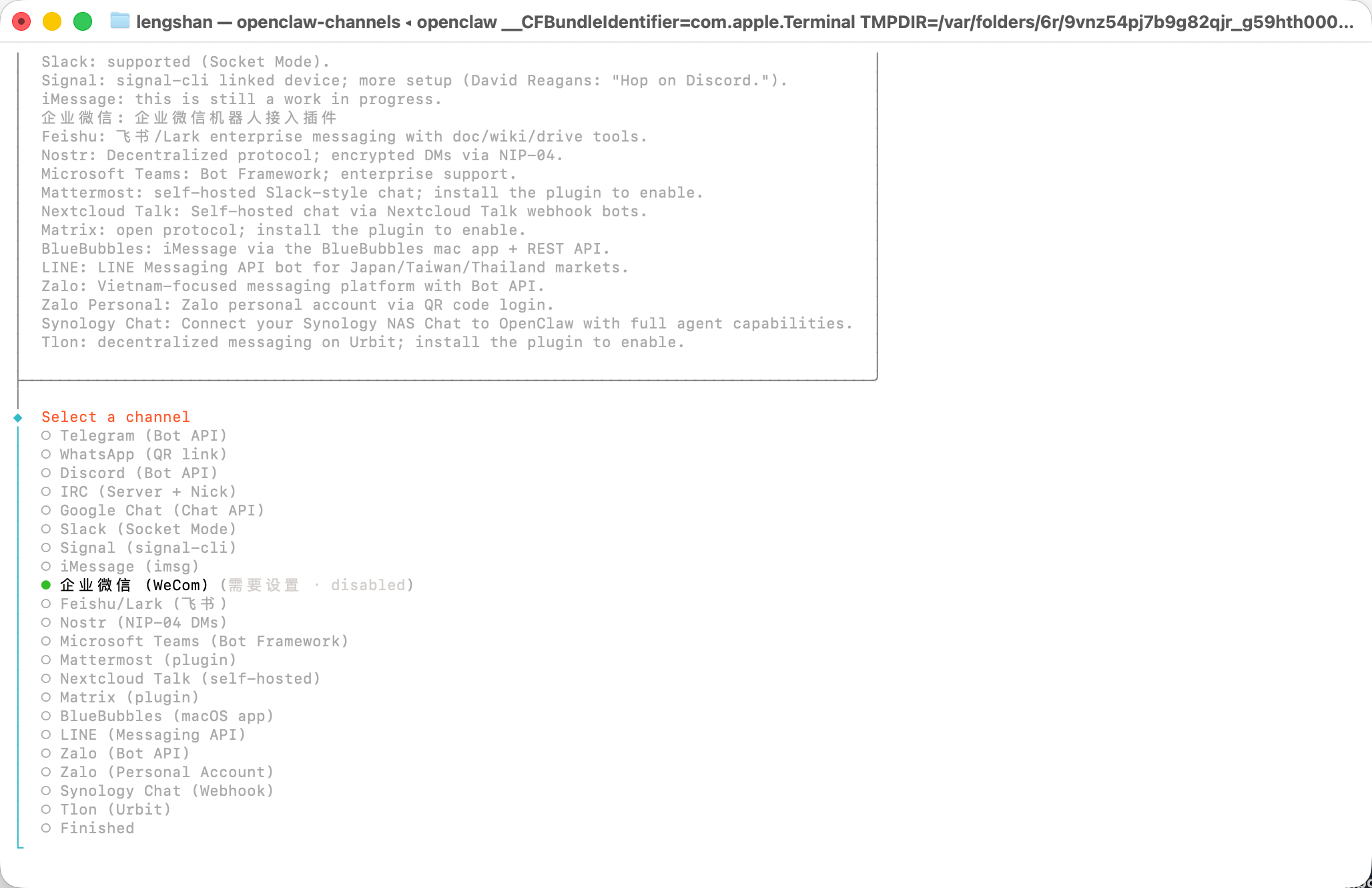 5、在select channel步骤,选择 channel 为企业微信。